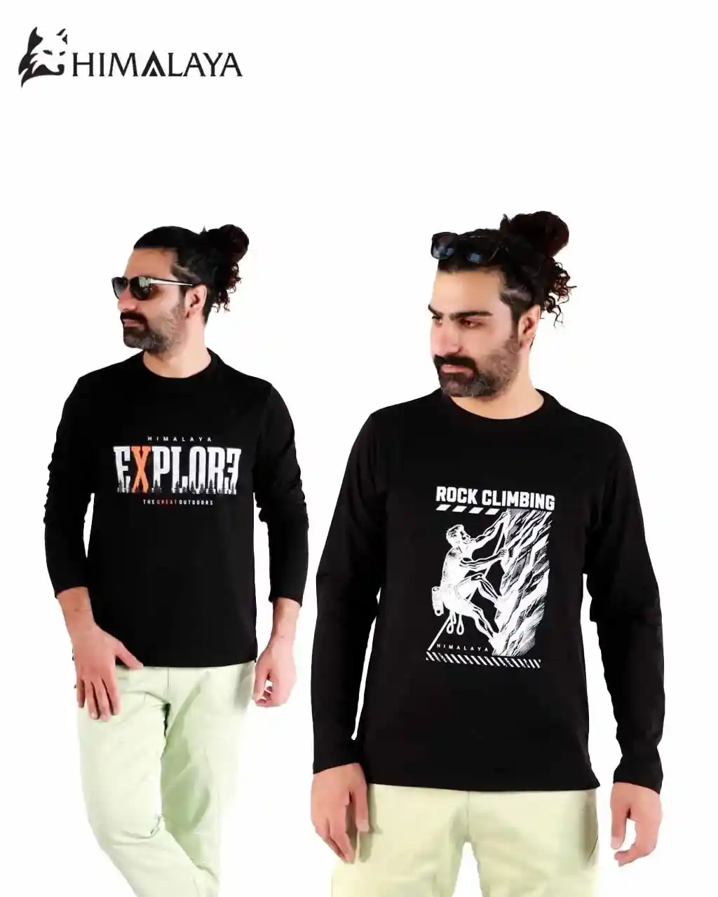 تیشرت پنبه آستین بلند مشکی CM96 هیمالیا